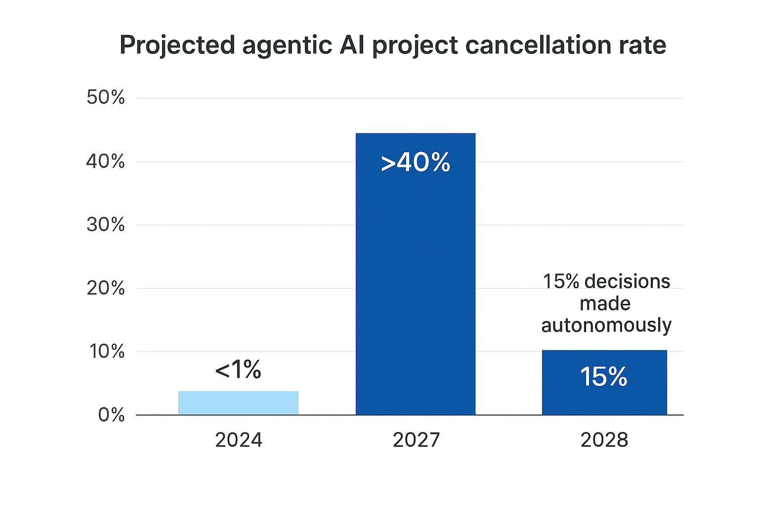 Agentic AI is no longer a distant concept—it’s the frontier of enterprise AI evolution. Defined as autonomous systems capable of making decisions and executing tasks with minimal human oversight, agentic AI promises dramatic transformation. Yet, according to Gartner, by the end of 2027 more than 40% of agentic AI projects will be cancelled.